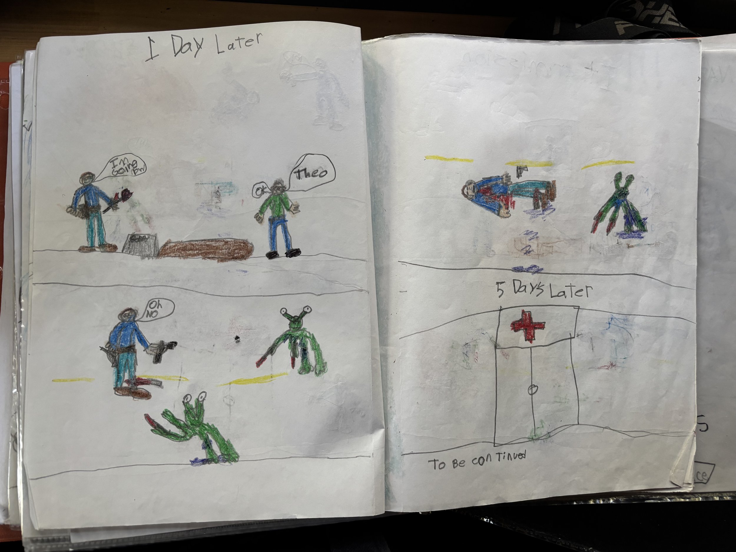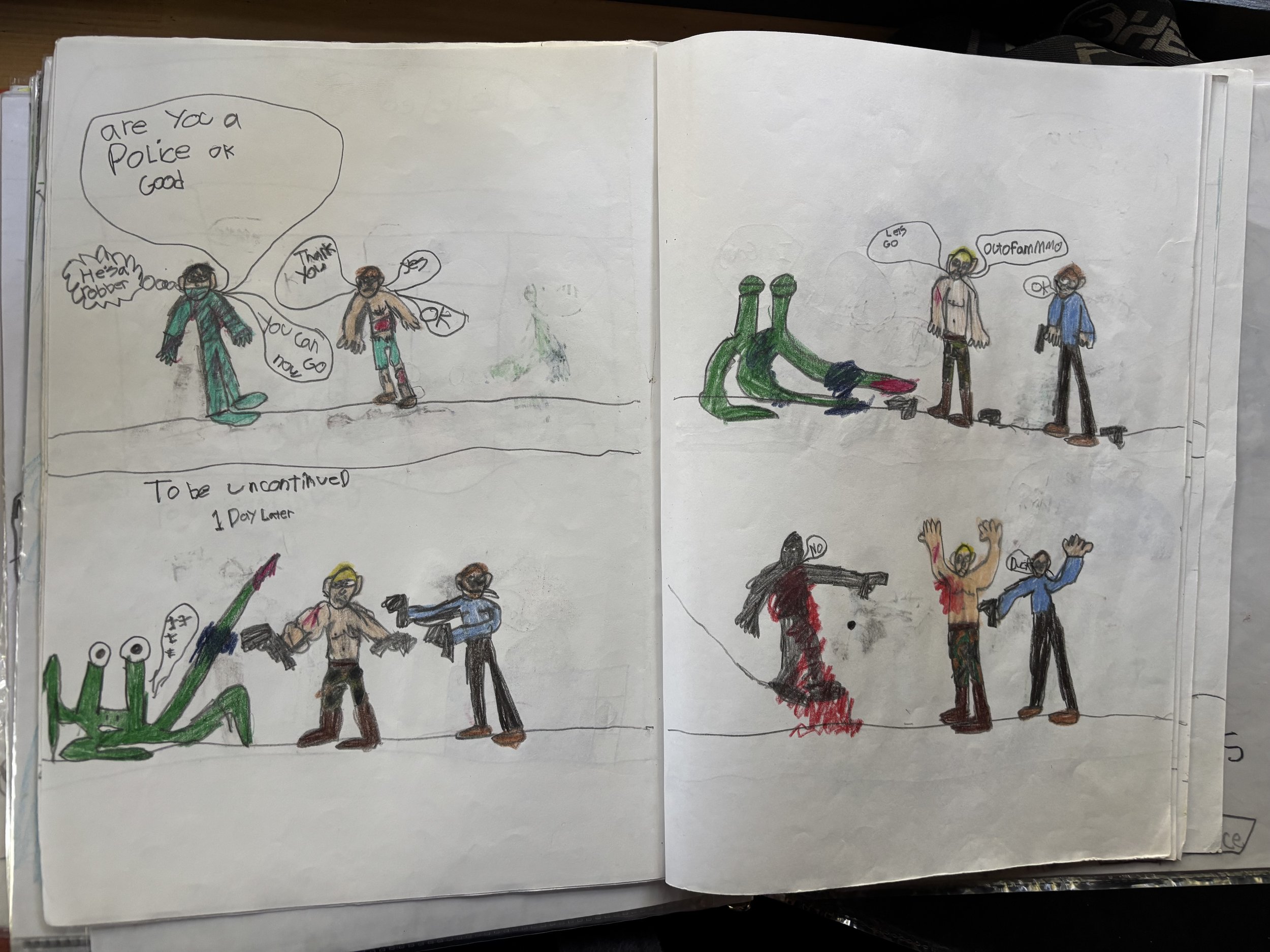 Still, I like the Playstation 2 interludes and unnecessary/illogical time jumps. Always gives me a good laugh. “THE O” was my “brand,” much like MARVEL and DC COMICS, and I’d even put the label on the back of my “novels” I’d staple together. I love the imagination of children.
